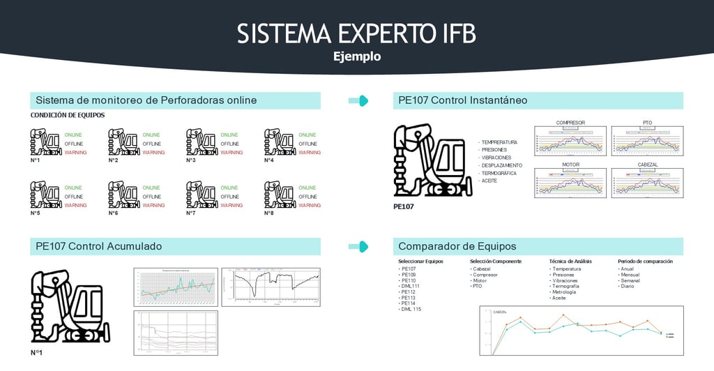 Con la información y conocimiento específico, el sistema podrá conocer y anticipar la falta de gran impacto. Esto, debido a la programación automática de alarmas y planes de acción que el sistema podrá identificar para entregar como resultado final, acciones de inspección o reparaciones antes de la detención del proceso.